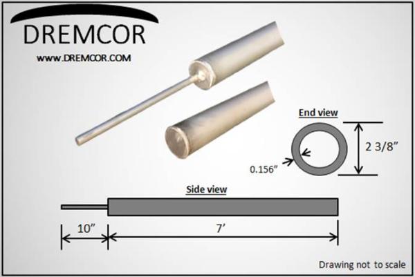This single piece anodized aluminum tube is traditionally utilized as the side pole for Dremcor's Titan Series pole tents in addition to other manufacturer tents of the same style. This is the lighter (yet durable) alternative compared to galvanized steel side poles. Contact us today with any questions!